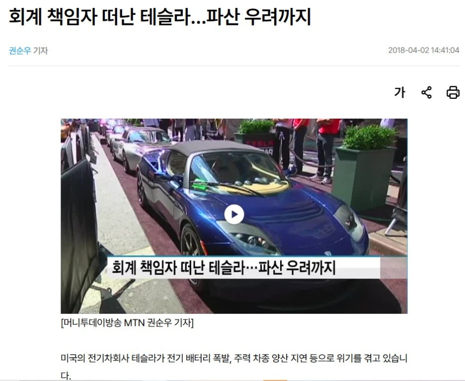 왜냐하면, 2018년 4월만 해도 테슬라가 파산한다는 뉴스로 도배되었었으니까요.\