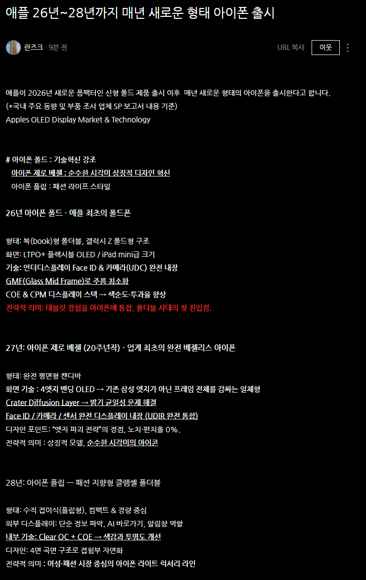 | 애플 폴더블 아이폰 관련주(실패와 fomo가 두렵지만 그 어느 때 보다 설레는 요즘) (0) | 2025.11.14 |